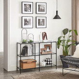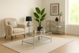 این ست سهتکه شامل میز جلو مبلی، میز عسلی (کنار مبلی) و کنسول فلزی مدرن است که با طراحی هماهنگ و ساختار صنعتی، یک ترکیب یکدست و حرفهای برای فضای نشیمن ایجاد میکند.