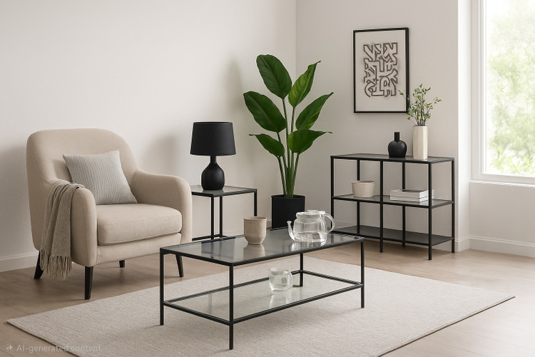 این ست سهتکه شامل میز جلو مبلی، میز عسلی (کنار مبلی) و کنسول فلزی مدرن است که با طراحی هماهنگ و ساختار صنعتی، یک ترکیب یکدست و حرفهای برای فضای نشیمن ایجاد میکند.