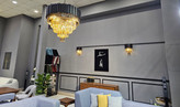 ساختار آن با بدنه فلزی مستحکم و پوشش رنگ کورهای الکترواستاتیک تولید شده تا در کنار زیبایی ظاهری، دوام و ماندگاری بالایی داشته باشد. جوشکاری صنعتی دقیق و پرداخت یکدست بدنه، کیفیت ساخت حرفهای این محصول را تضمین میکند. کریستالهای شفاف با برش منظم، نور را بهصورت یکنواخت منعکس کرده و جلوهای درخشان و مجلل در فضا ایجاد میکنند.