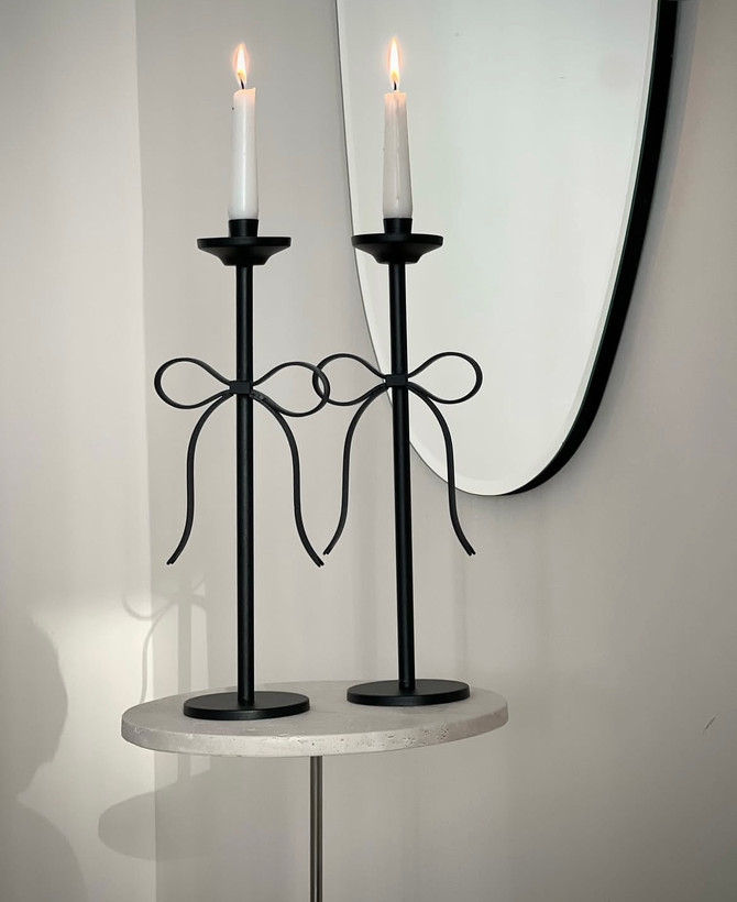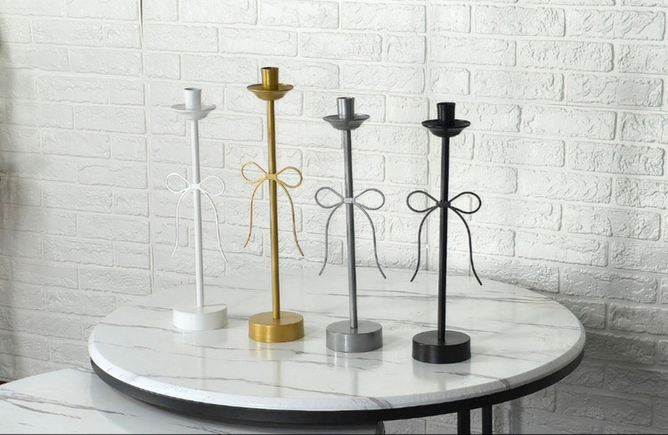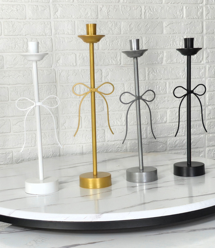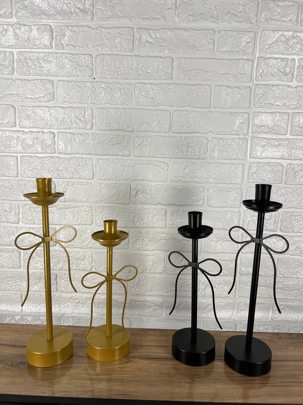 جا شمعی پاپیونی فلزی با طراحی مدرن و شیک، انتخابی ایدهآل برای ایجاد نورپردازی ملایم و جلوه دکوراتیو است.