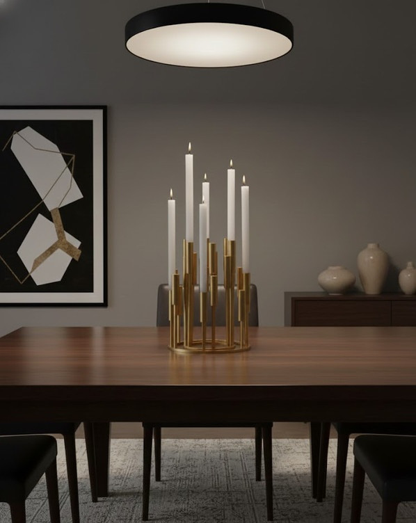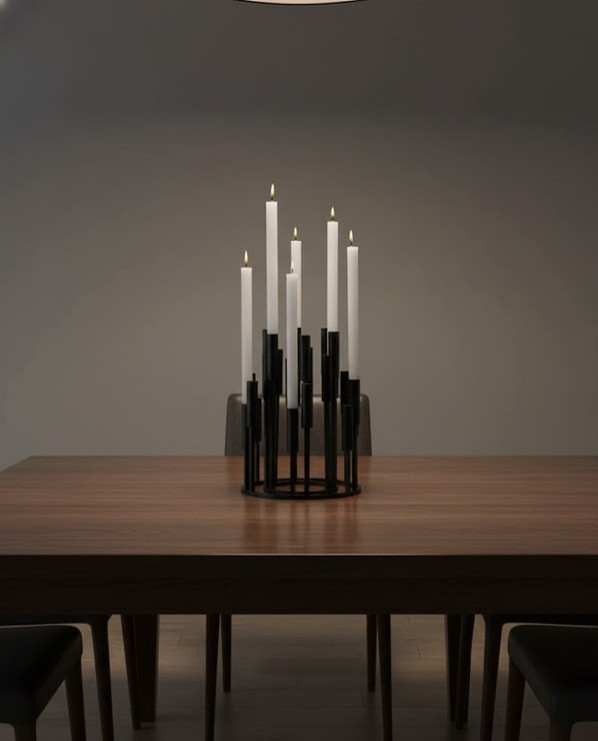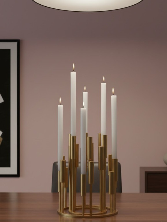 جا شمعی فلزی رو میزی با طراحی مدرن و شیک، انتخابی ایدهآل نورپردازی ملایم و جلو ه ای مدرن ایجاد میکند.