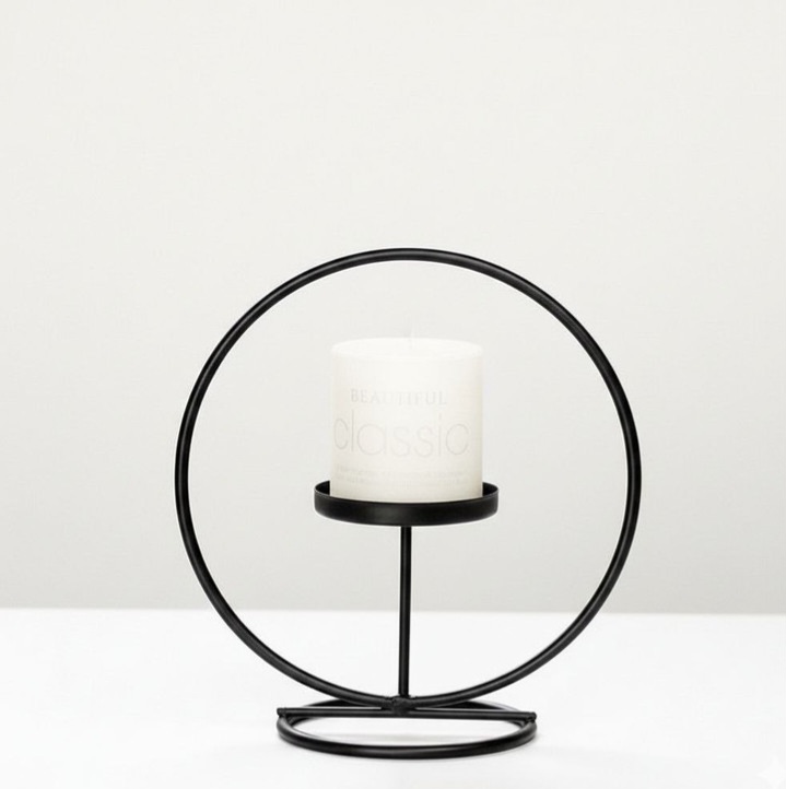 جا شمعی فلزی با طراحی مدرن و شیک، انتخابی ایدهآل نورپردازی ملایم و جلو ه ای مدرن ایجاد میکند.