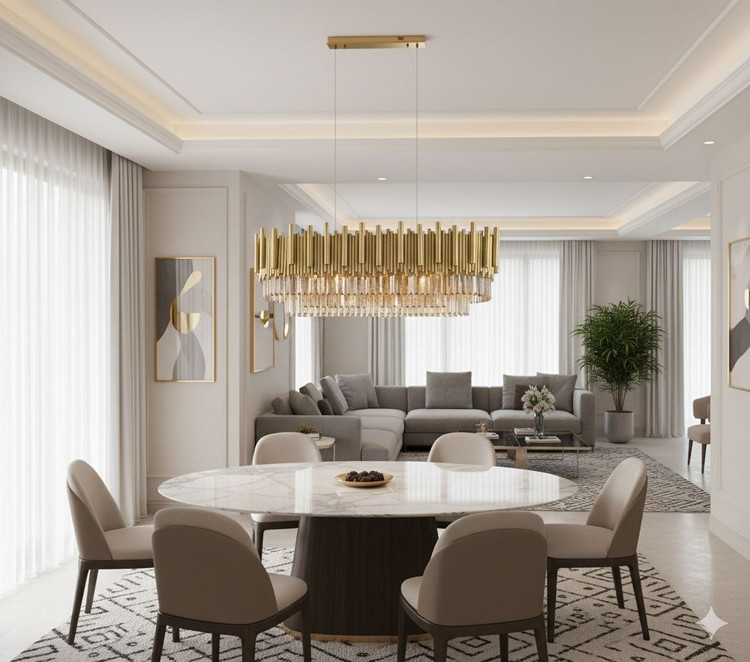 لوستر لاینری کریستالی با طراحی مدرن و کشیده، انتخابی لوکس و چشمنواز برای نورپردازی فضاهای امروزی است. ترکیب بدنه فلزی با کریستالهای شفاف، انعکاس نور زیبا و درخشانی ایجاد کرده و جلوهای خاص به محیط میبخشد. طراحی خطی این لوستر، آن را به گزینهای ایدهآل برای نصب بالای میز ناهارخوری، جزیره آشپزخانه، کانتر و فضاهای پذیرایی تبدیل کرده است.