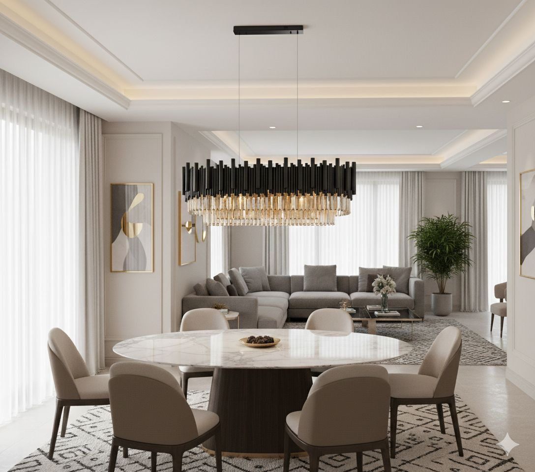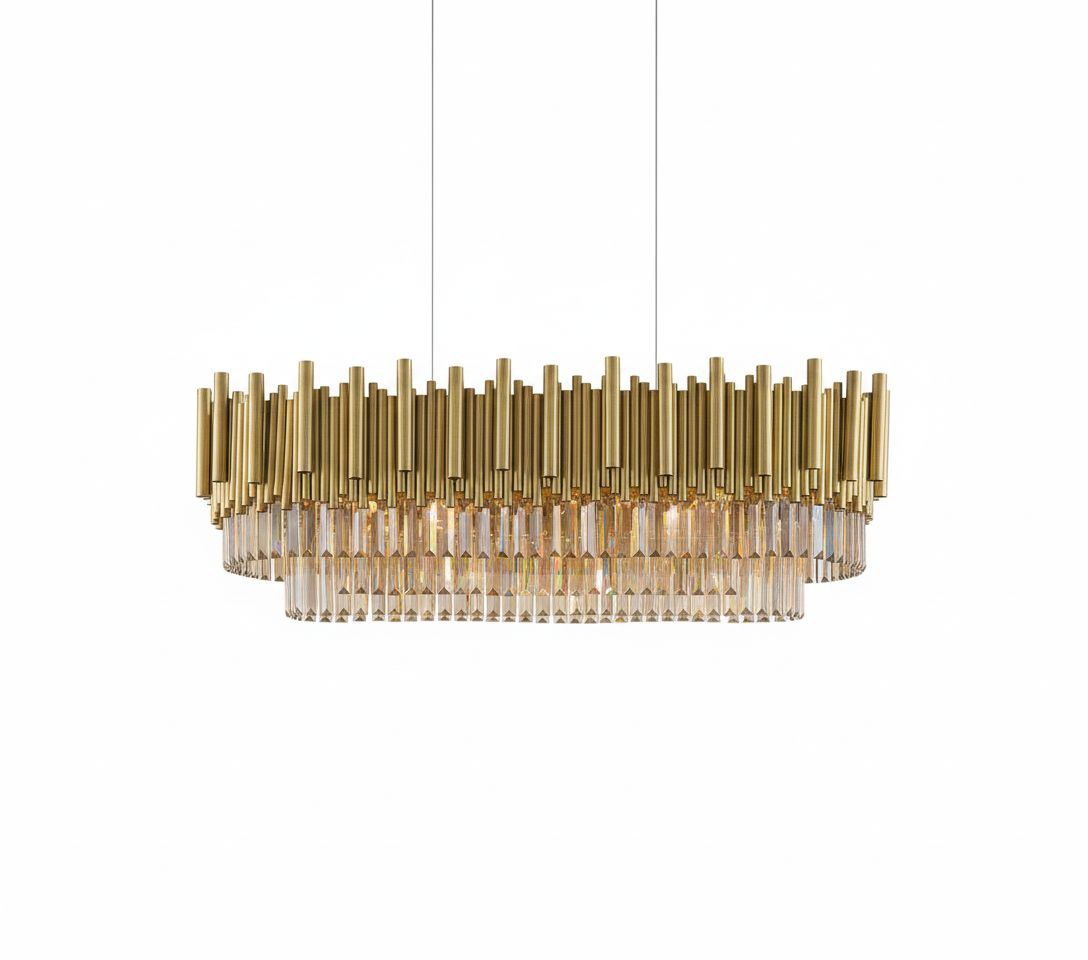 بدنه فلزی لوستر با رنگ الکترواستاتیک کورهای درجه یک پوشش داده شده که دوام بالا و ثبات رنگ را تضمین میکند. کریستالهای باکیفیت بهکاررفته، نور را بهصورت یکنواخت پخش کرده و حس لوکس و مدرن را به فضا منتقل میکنند. این لوستر قابلیت سفارشیسازی در رنگ، طول و تعداد کریستالها را دارد و مناسب فضاهای مسکونی و تجاری است.